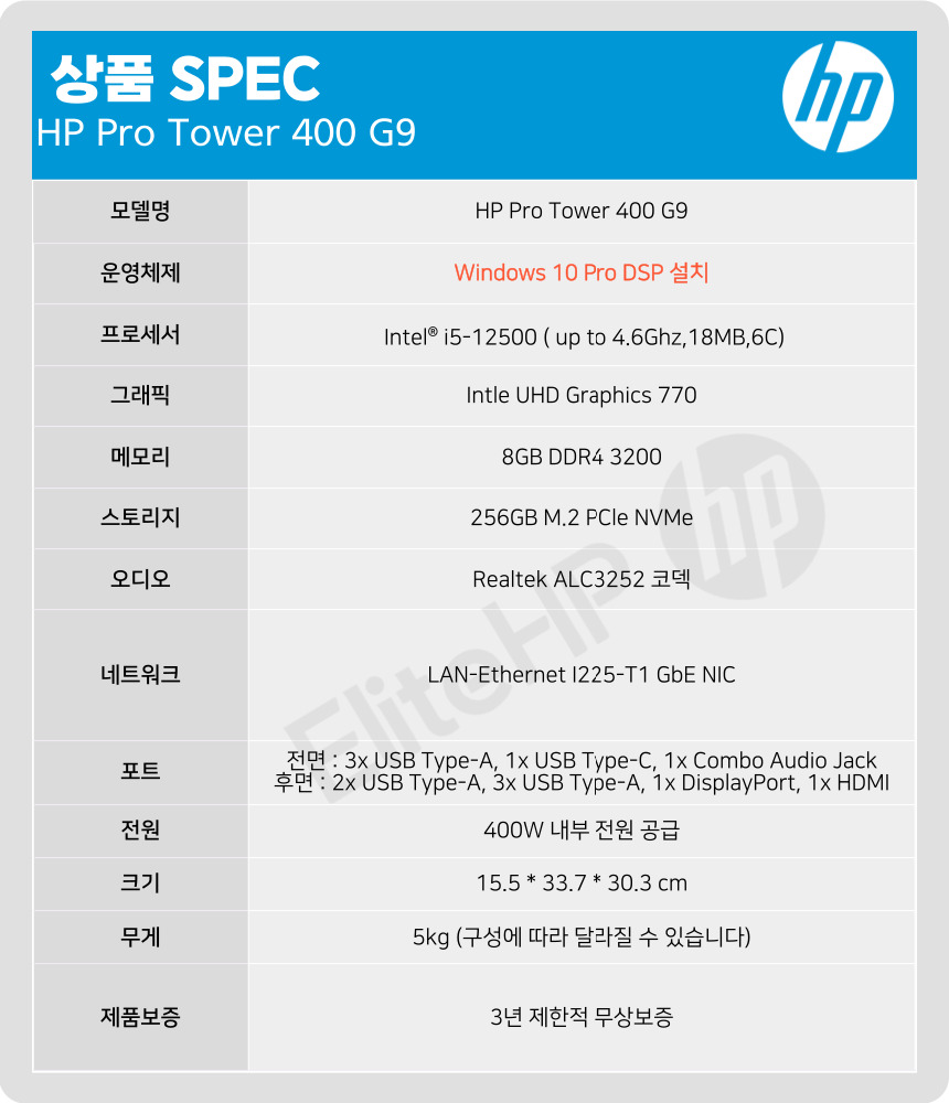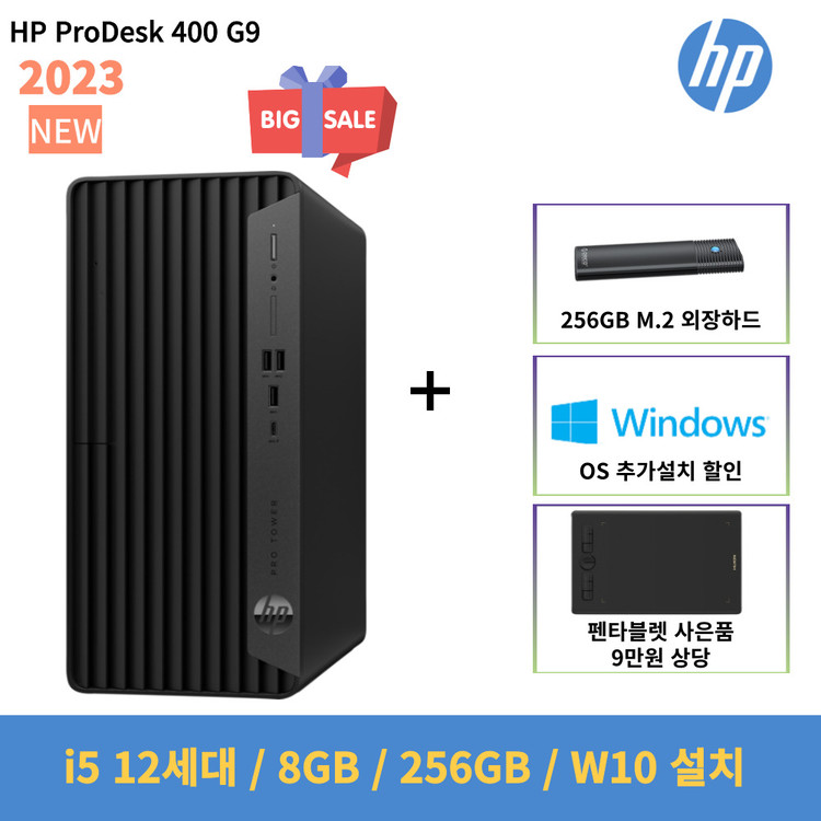 HP ProTower 400 G9 i5 8GB 256GB W10 추가 설치