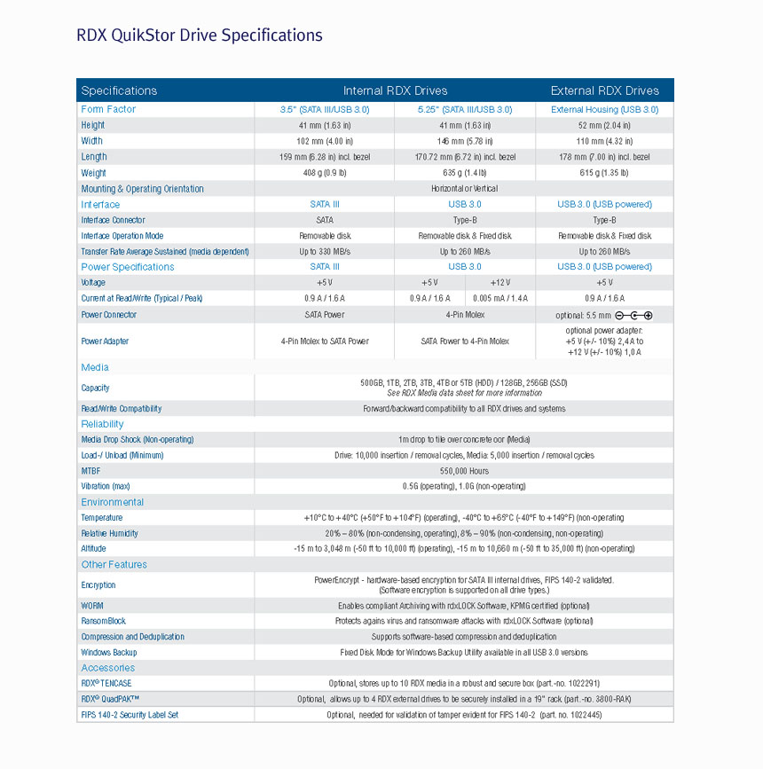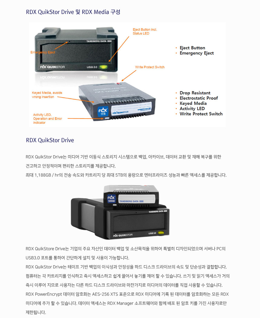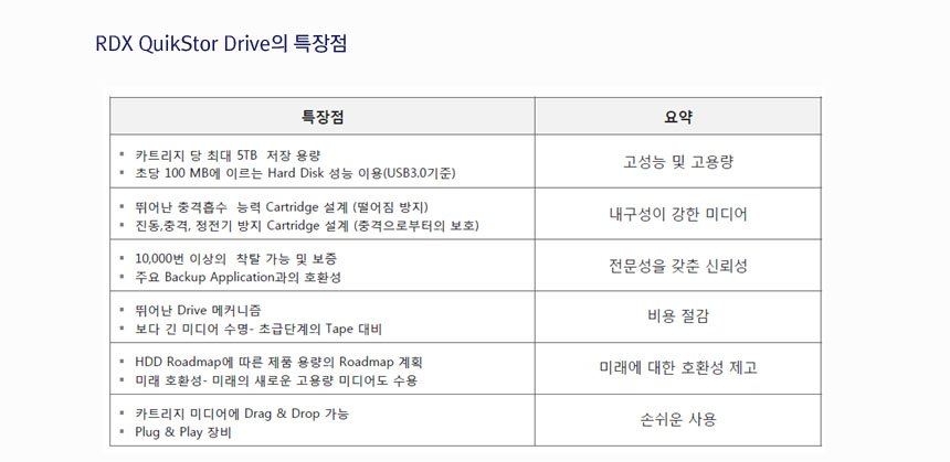 • RDX 미디어 기반 이동식 스토리지 시스템