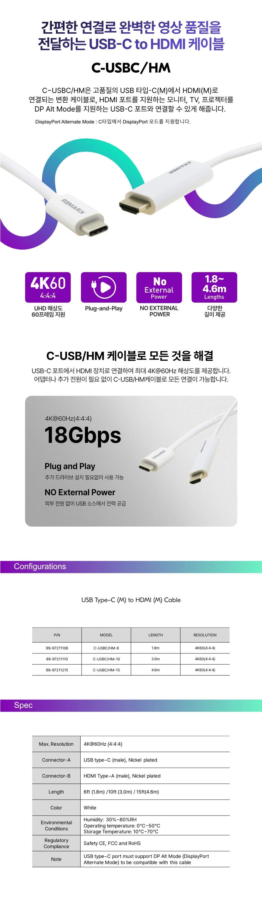 [Kramer] C-USBC/HM / USB-C to HDMI 케이블