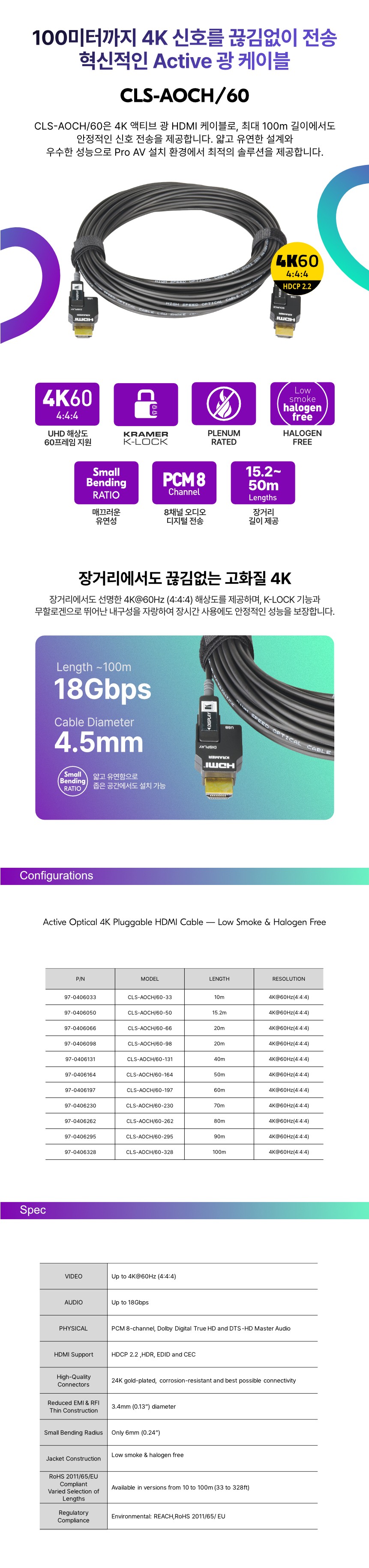 [Kramer] CLS-AOCH/60 / HDMI 고속 케이블