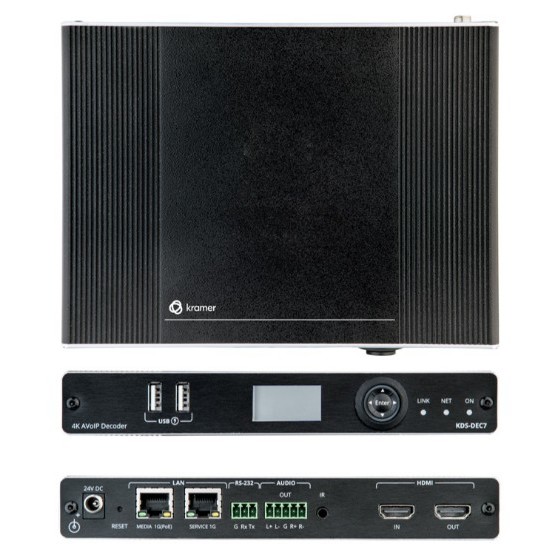 KDS−DEC7 디코더는 구리 케이블을 통해 이더넷을 통해 4K 비디오 신호를 스트리밍하기 위한 고급 수신기입니다.