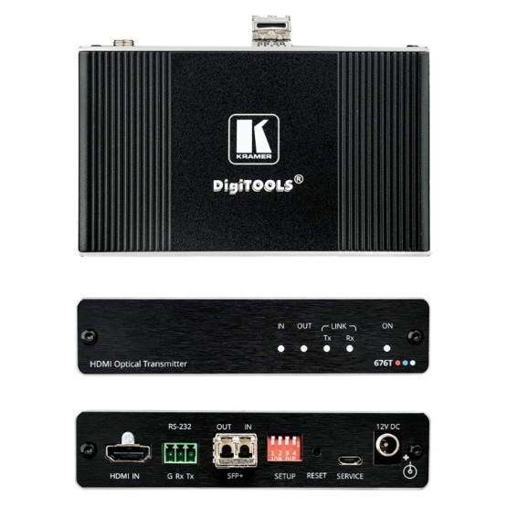 676T는 4K@60Hz(4:4:4) HDMI 신호를 초장거리로 확장하기 위한 고성능 HDMI 파이버 송신기입니다. 676T는 HDMI 및 RS−232 입력 신호를 광 신호로 변환하여 광섬유 케이블을 통해 호환 수신기로 전송한 후 다시 HDMI 및 RS−232 신호로 변환합니다.