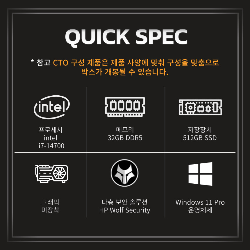 • CPU : Intel Core i7-14700 vPro Enterprise 5.40G 33 MB 20 cores 65W CPU