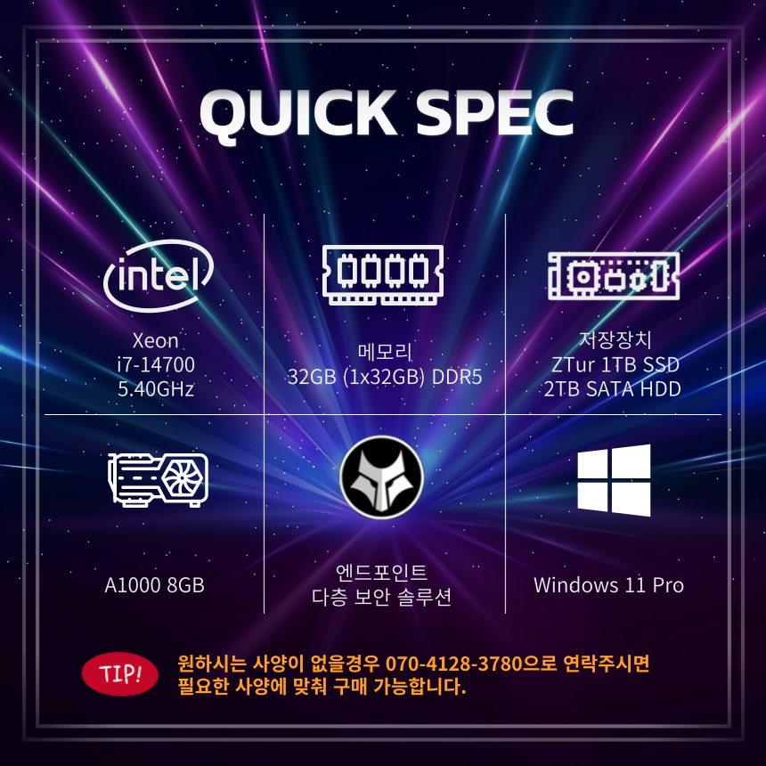 • CPU : Intel Core i7-14700 5.40GHz 20C