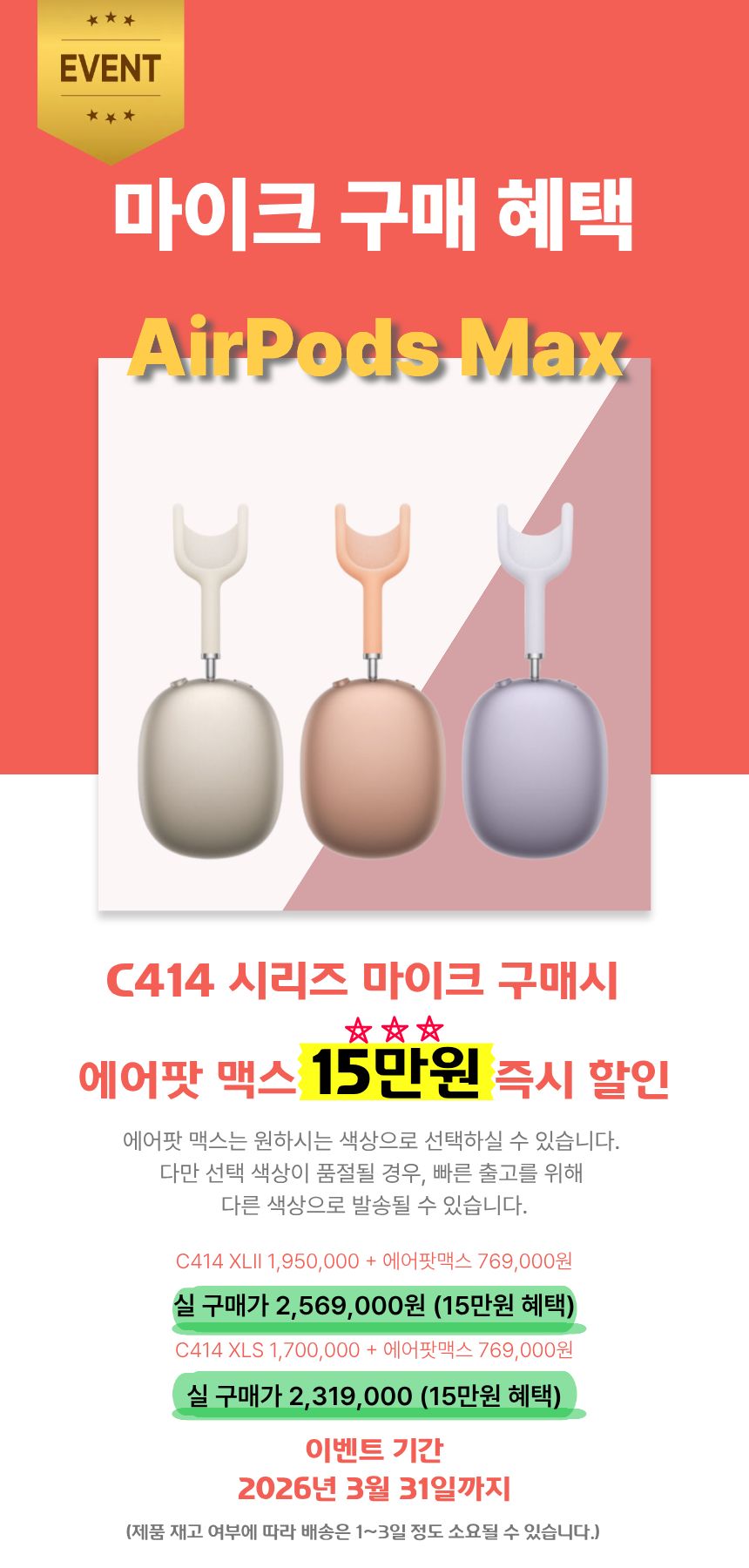 AKG C414 XLS 콘덴서 마이크 + 애플 에어팟 맥스 (AirPods Max) 국내정품 AS가능