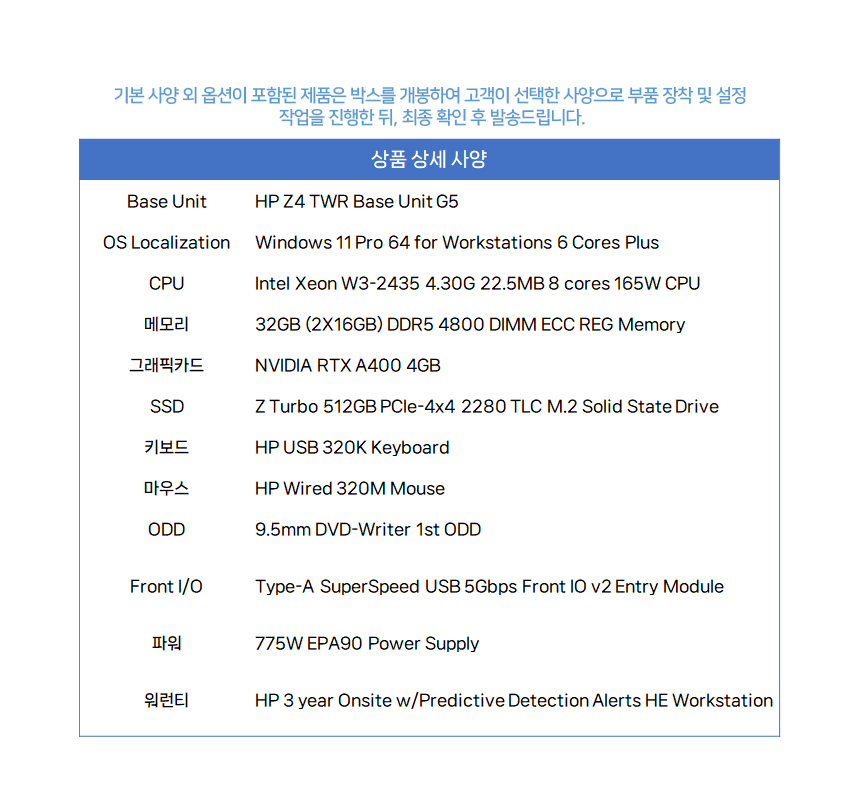 HP Z4 G5 워크스테이션 W3-2435 32GB 512GB SSD RTX A400 WIN11Pro