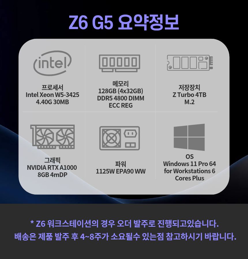 Z6 G5 W5-3425 128GB 4TB SSD A1000 8GB WIN11 Pro