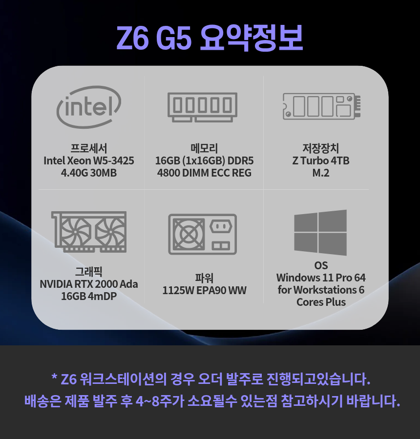 - CPU : Intel Xeon W5-3425 4.40G 30MB 12 cores