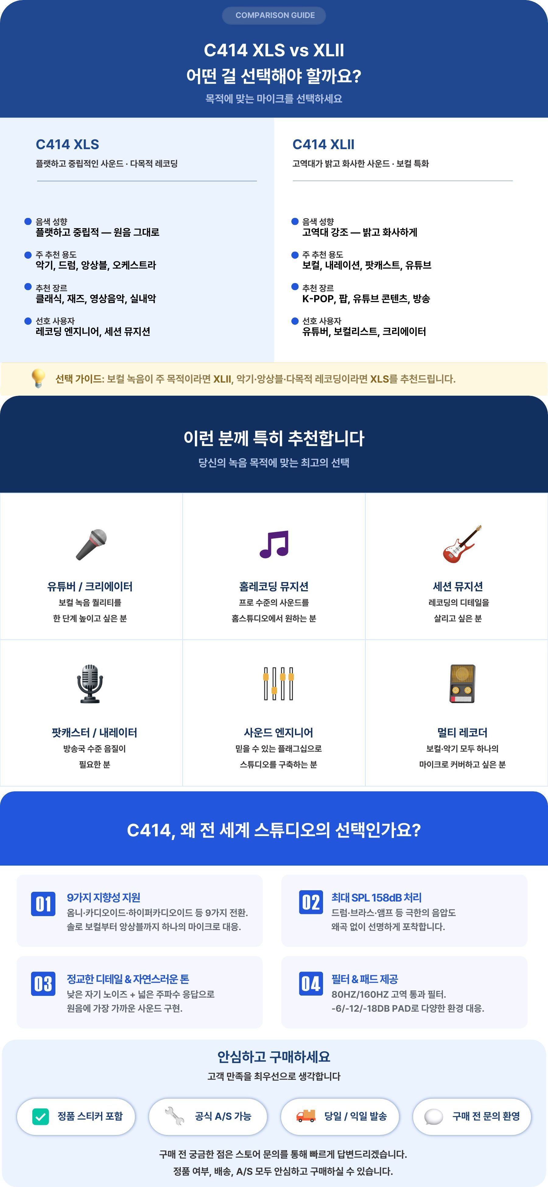 AKG C414 XLS 콘덴서마이크 정품 9가지지향성 스튜디오 악기 레코딩